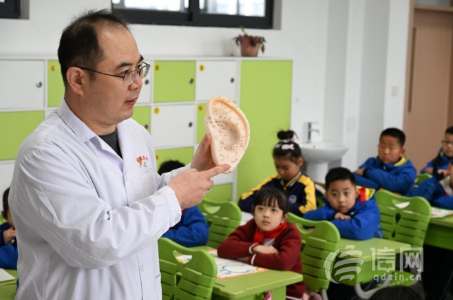 课堂上,即墨区人民医院的医生们为同学们进行了听力检查,围绕今年“爱耳日”的主题向学生们讲解爱耳护耳保健科学知识,并提醒同学们要积极养成用耳护耳的良好习惯,让学生了解爱护耳朵,保护听力的科学方法,提高爱耳护耳意识,远离一切对听力造成伤害的不利因素。张学勇说:“爱耳日里让孩子们了解爱耳日,关注耳朵健康,培养好孩子们爱护耳朵的习惯,同时给孩子们讲解耳朵的结构,让孩子们明白爱护耳朵的重要性。”