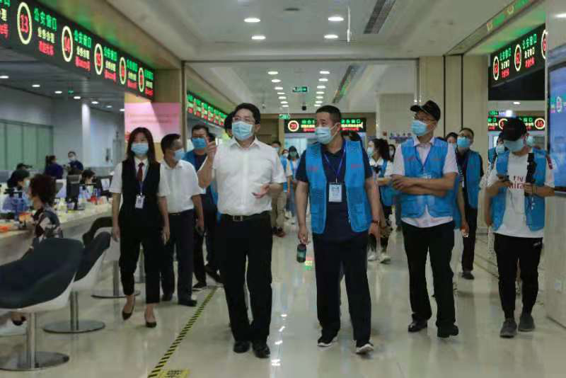 随后,采访调研团来到长安政务服务中心参观。进入中心,首先映入眼帘的是中心服务数据显示屏,只见屏幕的数据实时更新,以可视化图的形式呈现。