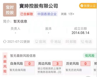 继续穿透其控股股东则发现,这家企业的控股股东宝时控股有限公司已经解散。