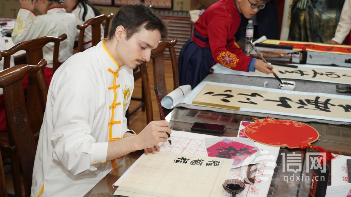 信网4月22日讯(通讯员 陈伟 记者 于晓)4月19日是第十五个“国际中文日”,在青岛滨海学院小珠山校区“地球村”,一场“赏书法之美、品汉文之韵”中外学生书法交流活动如期举行。该日恰逢中国传统节气“谷雨”,这场文化盛宴正如一场文化的“春雨”沁润着青岛滨海学院,也沁润着参加本次活动的中外学生。这次活动由青岛滨海学院携手青岛世界汉学中心、西海岸新区双语小学共同举办,旨在以中文为纽带,加强中外文化交流合作。西海岸新区教育和体育局国际交流合作部部长张健、青岛滨海学院国际学生管理中心主任金玉花、青岛滨海学院外国语与国际合作学院院长助理王安娜出席活动。