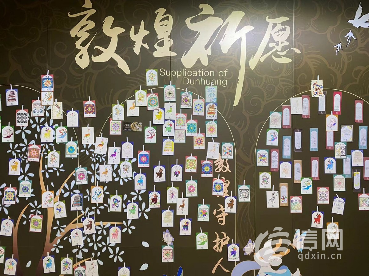 在展区出口位置,主办方还特别设置了“敦煌祈愿”区域,游客领取到许愿卡后,可写下自己的愿望或祝福,挂在祈愿墙上,用这种方式来表达对美好生活的向往。壁画、飞天、九色鹿、舞蹈......,这些许愿卡中饱含满满的敦煌元素,使得敦煌文化在当代人的生活里焕发出新的魅力。