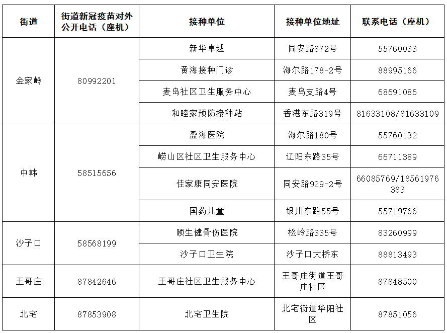 原标题:市南区、市北区、李沧区发布新冠病毒疫苗接种地点