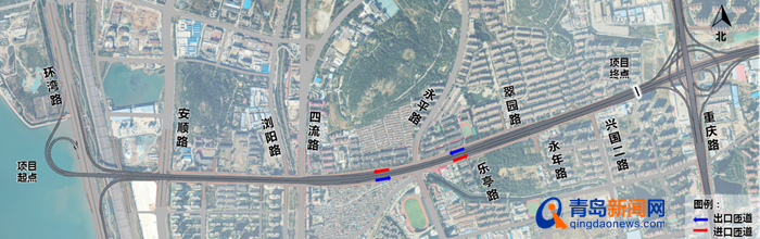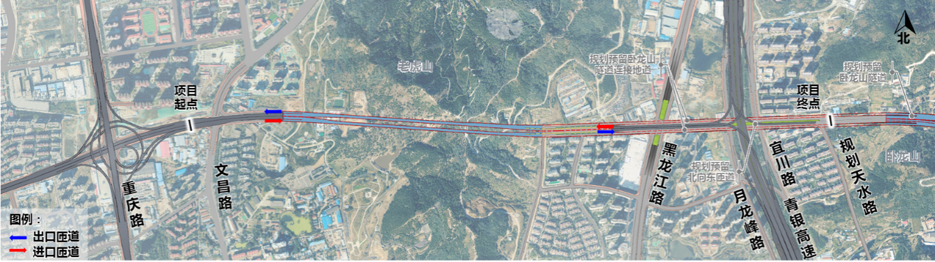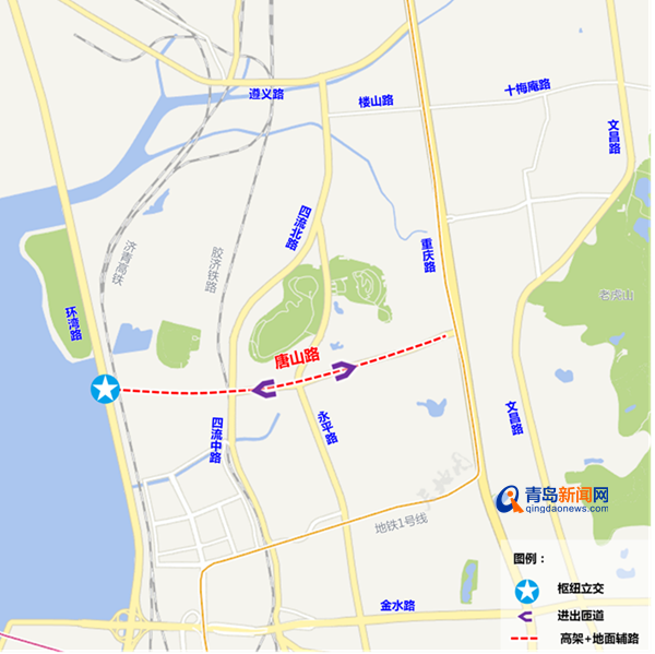 3.项目概况:根据青岛市城市总体及道路网规划,唐山路(重庆路-天水路段)工程西起重庆路,东至规划天水路,全长约3.3公里,是贯穿东岸城区东西主要的交通走廊。初步方案为主线双向6车道,隧道与高架相结合形式,地面辅路双向6车道,穿越老虎山段无地面辅路。全线设置1座青银高速部分互通立交,并增设青银高速出入口收费站,同时在老虎山东西两侧各设置1对接地匝道衔接地面辅路;同步实施黑龙江路节点南北地道。项目的建设可完善东岸城区路网,提高沿线区域出行效率,并有效缓解金水路、九水路等东西通道的交通压力。