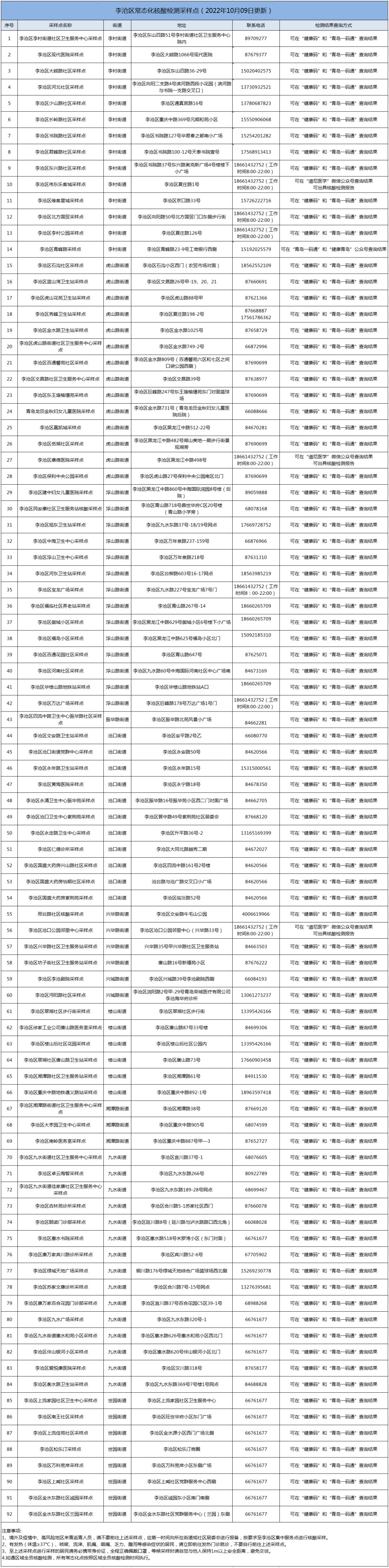 1.李沧区“核酸检测服务圈”采样点详情见本通告下方。