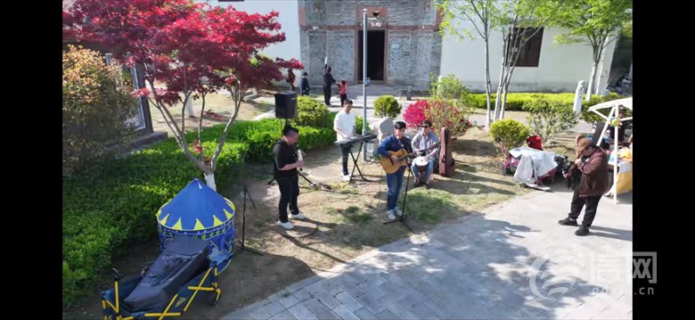 不只有传统戏曲表演,院子还邀请到青岛本土乐队——星爵乐团,在湖畔为游客们倾情献唱。春日暖阳,绿草茵茵,微风拂面带来湖岸的温润,游客们驻足聆听湖畔,聆听着乐队的动人演唱,也聆听着来自春天的声音。
