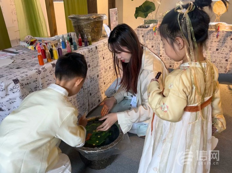 “五一”期间,茂腔演员、茂腔青年领军人物别淑君现身中国院子,身着粉衣、头饰珠翠,游走于水榭、戏台,带来一场视听盛宴。现场,正在研学的小朋友们,被中国传统戏剧茂腔所吸引,纷纷围着别淑君提问、合影。