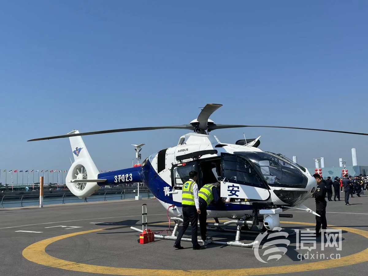 大鹏展翅,长空万里。随着旋翼的加速转动,青岛公安37023警用直升机平稳离地升空,机组人员为群众带来飞行性能展示,在一系列复杂而精确的操纵下,水上悬停360度原地转弯、左右侧飞、大坡度8字转弯、大速度通场,悬停静若处子、飞行动若脱兔,现场群众对机组人员熟练精湛的飞行技术赞叹不已。