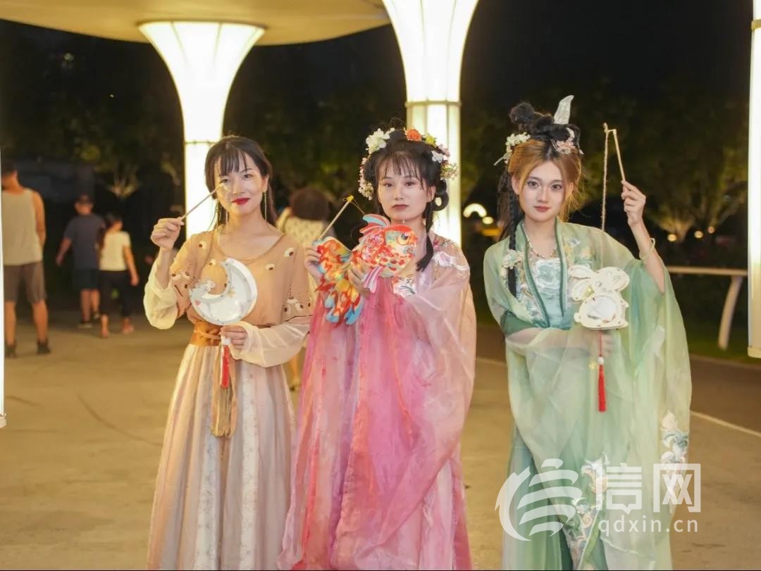 在“海之恋·中秋奇妙游”体验区域,设置了国潮非遗展示、中秋浪漫表白、中秋赏味品饮、非遗手作体验以及古风露营赏月五大板块。活动现场,月光相约、花灯弄影,趣味猜灯谜将传统文化知识有趣地融入;杨克瓷板画、滕派烙画、崂山冷凝香、崂山二十四节气尊生茶非遗技艺等展示让市民游客在欣赏体验中感受文化传承与艺术魅力;在手作体验区,古风非遗漆扇手作、宋代点茶体验,带领大家用“指尖技艺”打包月光,感受手作别具匠心的“慢时尚”;在浪漫表白区,仪式感爆棚的气球花装置引来年轻情侣纷纷打卡拍照,小丑互动、汉服巡游也为现场凭添几分热闹氛围。