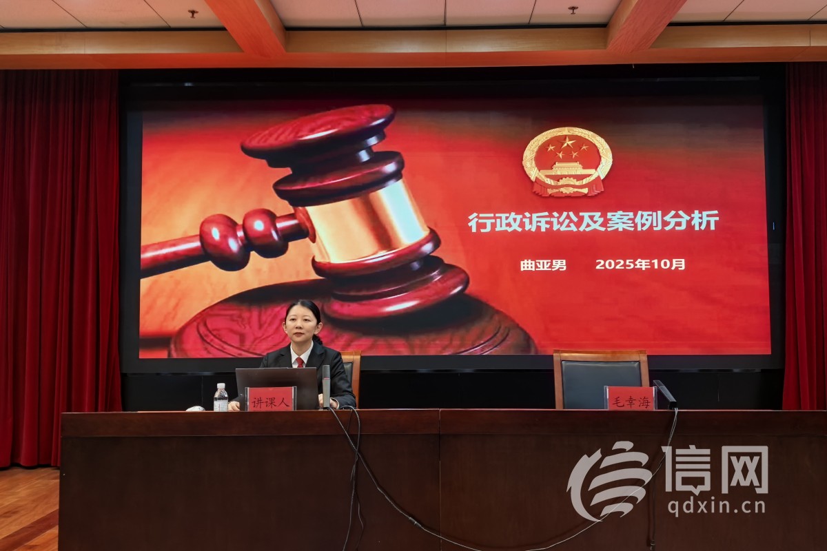 信网10月17日讯 为进一步提升行政执法人员法治素养和执法能力,助推法治政府建设,10月15日,市南法院行政庭四级高级法官曲亚男应邀在2025年法治政府建设培训班上作专题授课,市南区政府各部门、街道办事处90余名法治工作分管领导及工作人员参加活动。