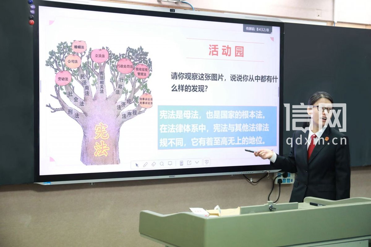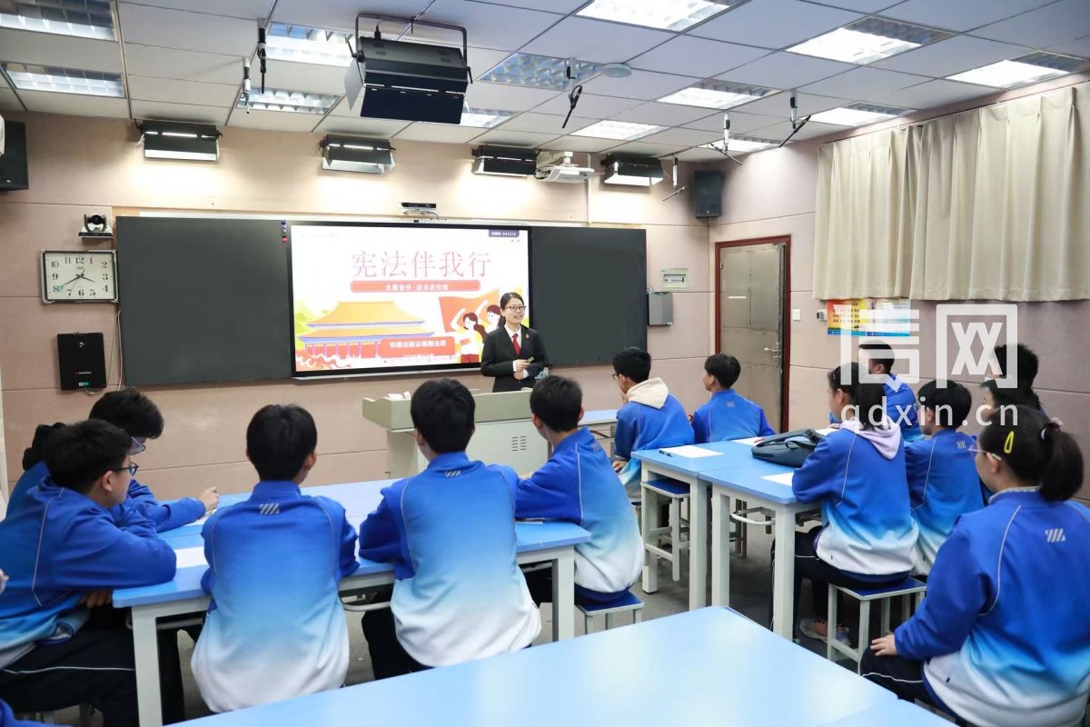 12月4日,市南法院云南路法庭法官助理李星受邀走进青岛第五十九中学,为全校师生带来一堂别开生面的宪法教育课。