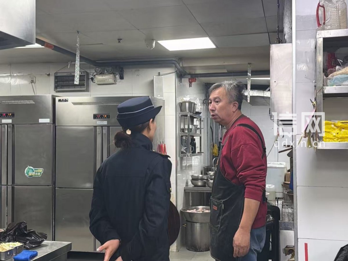 中韩综合行政执法中队聚焦同和路、北都广场、依山伴城等重点区域,深入排查餐饮经营场所燃气使用安全隐患。检查中发现,同和路某餐饮商户在燃气管道上方违规安装支架,执法人员现场下达整改通知书;张村社区周边一餐饮企业在不符合安全条件的场所违规储存气瓶,执法人员依法实施行政处罚并责令立即纠正,以精准执法强化安全警示效应。