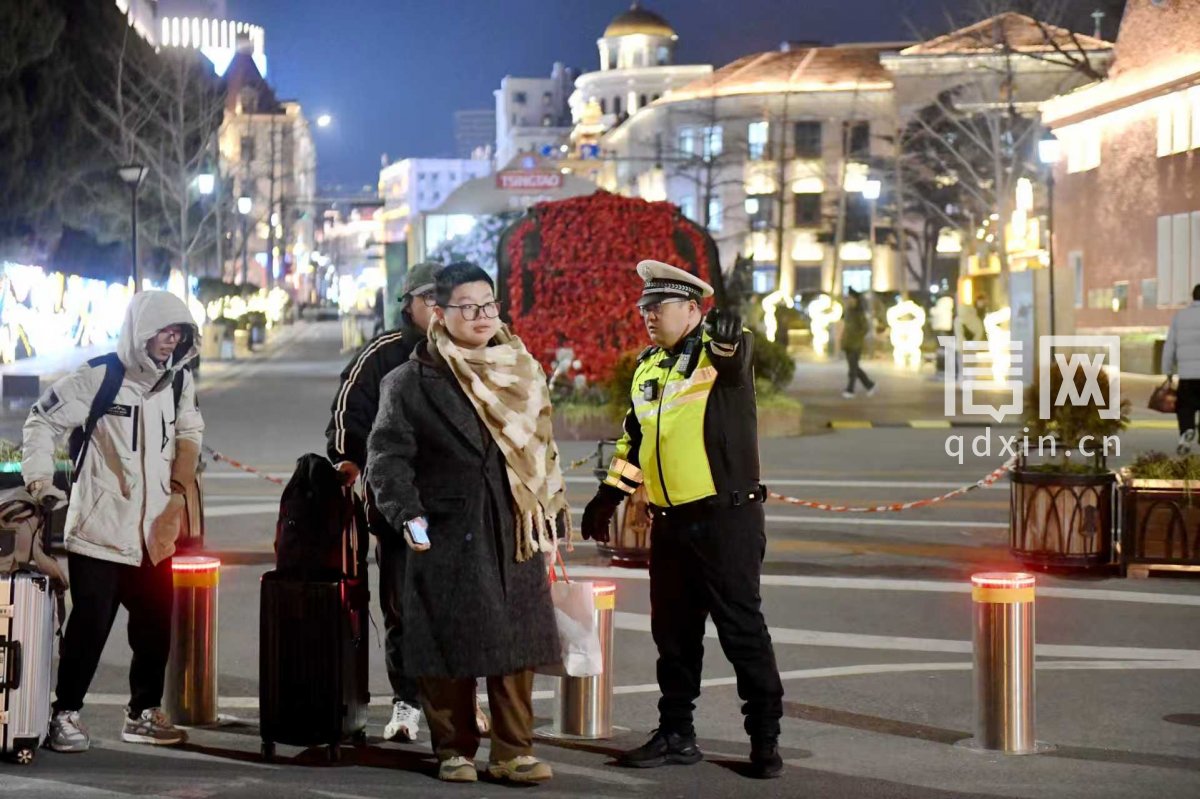 “迎新年”活动期间,全体交通民辅警规范执勤、热情服务,及时帮助群众。此外,公安交管部门强化宣传引导服务,通过道路诱导屏、交通广播、网络媒体高频播报重点区域道路通行流量、停车指引及交通管控信息,同时利用“青岛停车”App,联动高德、百度地图平台开展线上诱导,推荐优化通行路线,科学调控动静态交通需求,引导群众快捷、文明、平安出行。