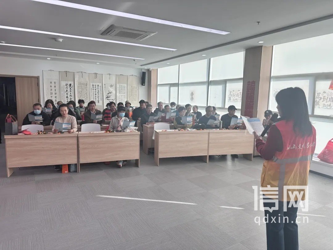 与此同时,秦岭路、大埠东等社区相继开展《崂记文明》主题课。活动中,工作人员带领居民们集体诵读《崂记文明》手册,在齐声朗读中深化理解、形成共识。这种学习,不仅普及了文明知识,更如同一场集体承诺,引导居民反思日常,将手册中倡导的尊老爱幼、邻里和睦、诚信友善等优良家风与社区美德,内化于心、外化于行,夯实了文明社区的根基。
