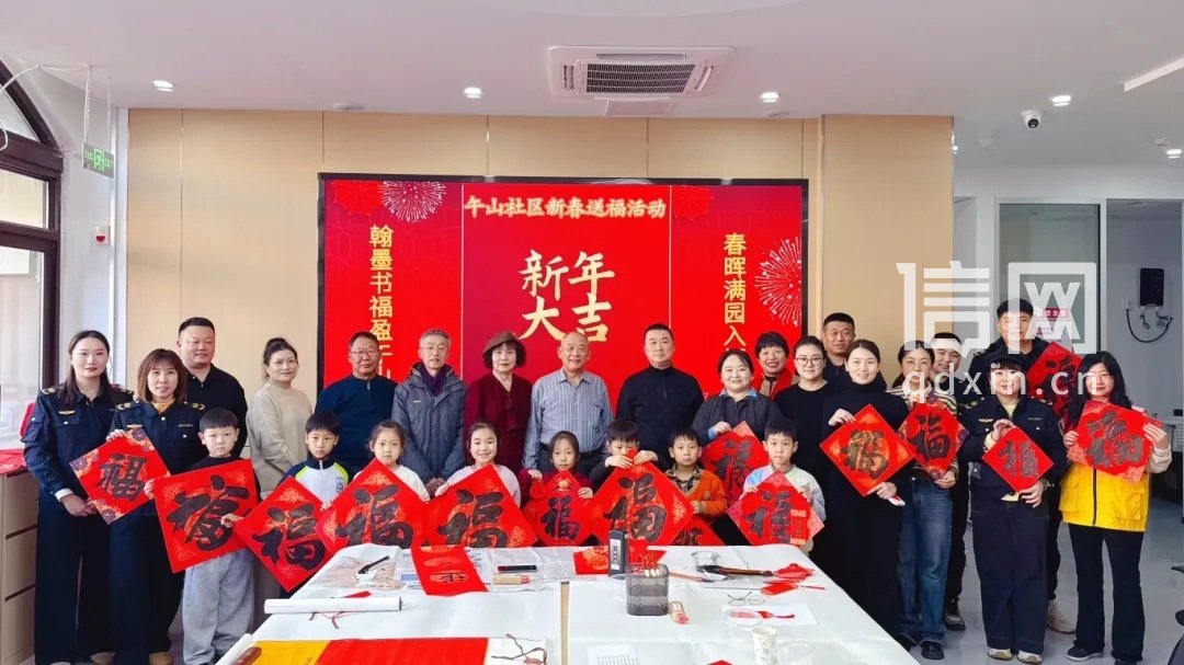 午山社区和金家岭社区则不约而同地飘起了翰墨香。书法家与爱好者们铺纸研墨,挥毫泼墨,将“一帆风顺”“万事如意”等美好祝愿凝于笔端,化作一幅幅春联和“福”字。居民们或欣赏、或请教、或领取,场面暖意融融。令人感动的是,孩子们在书法家指导下认真写下稚嫩却真挚的“福”字,传统文化的种子在他们心中悄然播下。手写春联承载的不仅是年味,更是文化根脉的传承与邻里温情的传递。