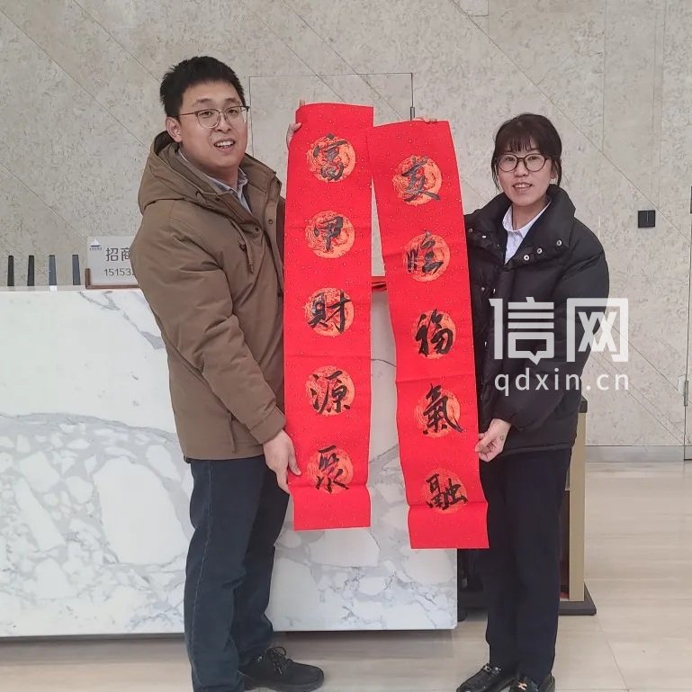 信网2月9日讯 春节临近,年味渐浓。为进一步做深做细楼宇党建服务工作,推动政企联系往实处走,青岛市崂山区金家岭街道上实片区楼宇党委联合共青团崂山区委,组织开展“挥毫书惠企·携福入新春”企业专属春联定制送福活动。活动为片区逢时科技、山东高速等100余家重点企业及物业公司量身打造藏头诗春联,并组织楼宇党委及楼宇工作站工作人员组成“送福小分队”,携春联与政策资料上门走访,在传递祝福的同时,对接企业需求,做实服务保障。