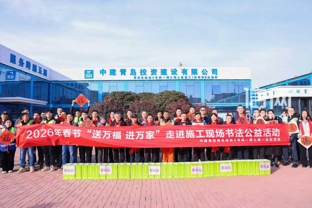 信网2月10日讯 2月9日下午,青岛地铁9号线项目工地内红笺铺展、墨香扑面,由青岛市住房和城乡建设局、青岛市总工会联合主办,青岛市建设工会、中建青岛投资建设有限公司共同承办的“送万福 进万家”书法公益活动在此举行,书法家们现场挥毫为一线建设者送上新春祝福。