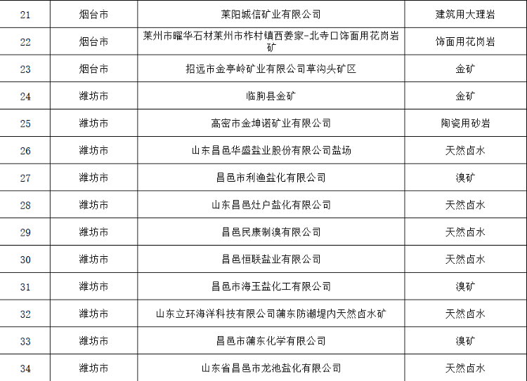 从矿山所在行政区来看,德州市此次入选矿山数量最多,共38家;潍坊市、东营市分列二、三位,分别为13家和10家。