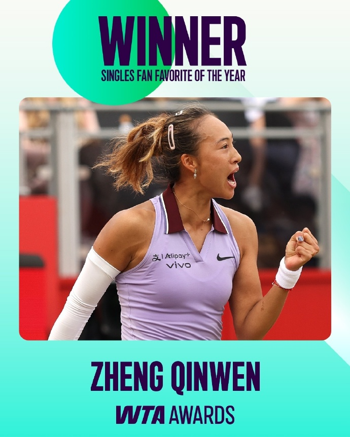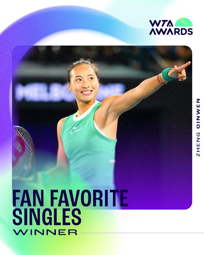 原标题:蝉联人气女王!郑钦文再次当选WTA最受欢迎单打球员