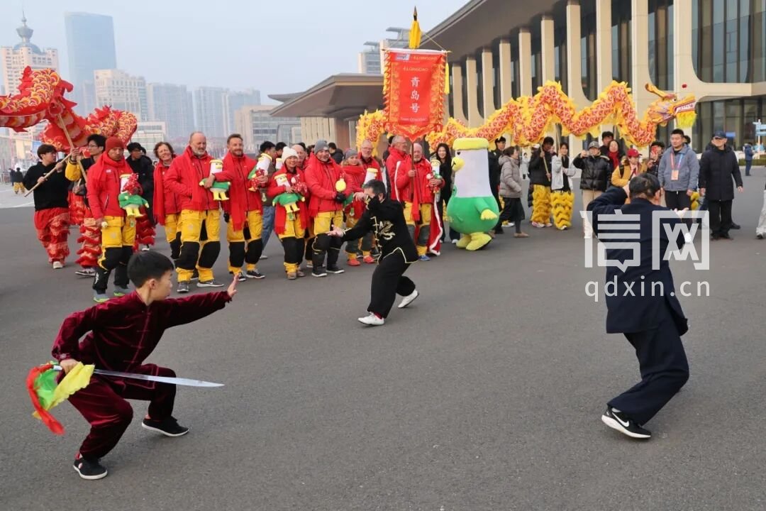 当日下午,“青岛号”在船长带领下压轴归港,船上三名青岛大使船员荣归,码头市民热情迎接。为迎接这位“二十年老友”,青岛为每支抵港船队打造特色欢迎仪式,秧歌、舞龙舞狮等民俗表演轮番上演,将“中国风、青岛味、国际范”融入其中,中外嘉宾还为船员送上特色祝福礼,定格跨国航海情缘。