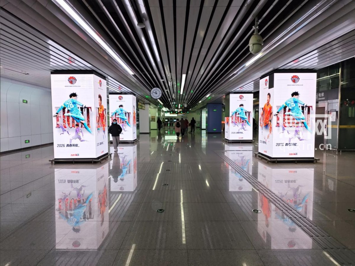 信网4月2日讯 近日,青岛地铁苗岭路站和大埠东站内,青岛海牛赛事应援广告正式亮相,醒目的球队元素、热血的应援标语,成为出行路上的独特风景。青岛地铁以独特的情感语言,将站内空间打造为与粉丝产生共鸣的文化微景观,连接着粉丝的每一份热爱,让出行路成为奔赴偶像的仪式通道。