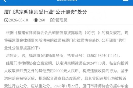 厦门从业37年资深律师翻车!违规私收费用被公开谴责,所在律所被罚1.5万元