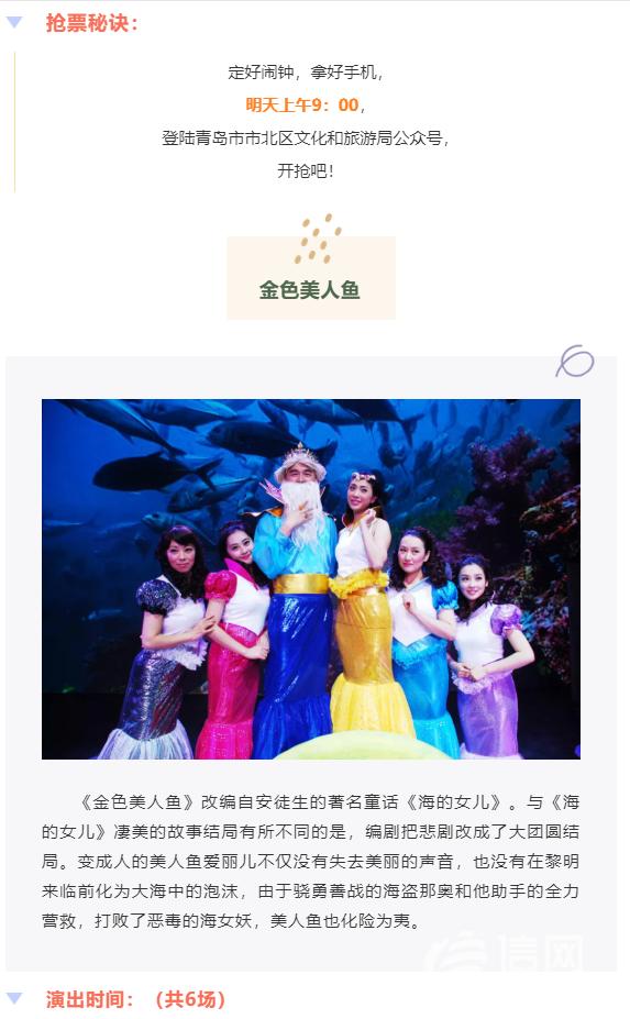 说起儿童话剧,在市北,这可是备受家长和孩子青睐的文化项目。工作人员介绍,他们每年都会推出专业剧场的公益演出,市民抢票即可免费观赏。“今年,儿童话剧《金色美人鱼》《大懒猫》和情景歌会《永恒的旗帜》已经公益演出20场,免费为市民送票数千张。”工作人员提醒,这些惠民信息均会在微信公众号“青岛市市北区文化和旅游局”上进行预告,感兴趣的市民一定要关注,及时查看讯息。