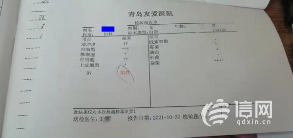 “三甲医院的医生说,未婚未育的女性不建议做这种物理治疗,所以我认为友爱医院过度医疗。”王女士还称,青岛友爱医院和三甲医院开出的有关炎症的检查报告结果也大相径庭,“前者说我有严重炎症,但后者说我并没有什么问题。”