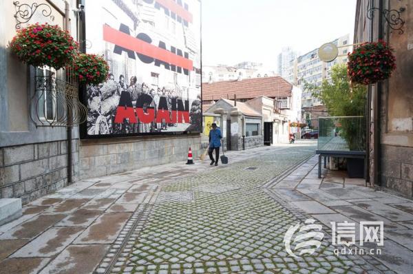 巷子的路面两侧保留着青岛特有的车轮石,这些百年车轮石被时光打磨出油亮的包浆。路面中间,按青岛老式工艺嵌满了马牙石。一场新雨后,从石头缝里冒出的小草,为街巷着上一抹新绿。街区里多为传统里院建筑,一般前院经商,后院居住,曾经开满了货栈、客栈,非常繁荣。