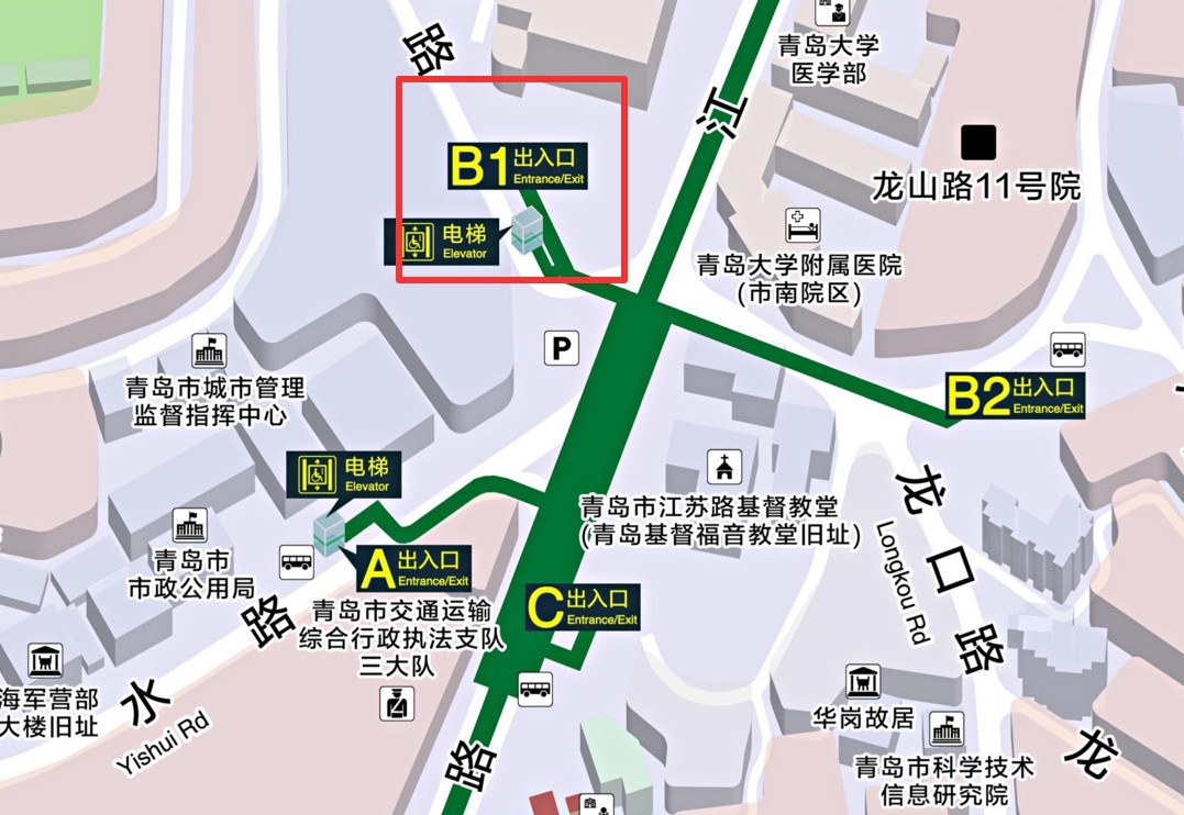 信号山(青大附院)B1出入口位于青岛大学附属医院(市南院区)内部,从此出站可达医院院内,同时该出入口设有垂直电梯、步梯及扶梯,乘客可根据自身需要选择进出站方式。该出入口启用后市民乘客看病就医之路将变得更加便捷,也对改善医院周边的交通秩序起到了一定的促进作用。(信网记者)