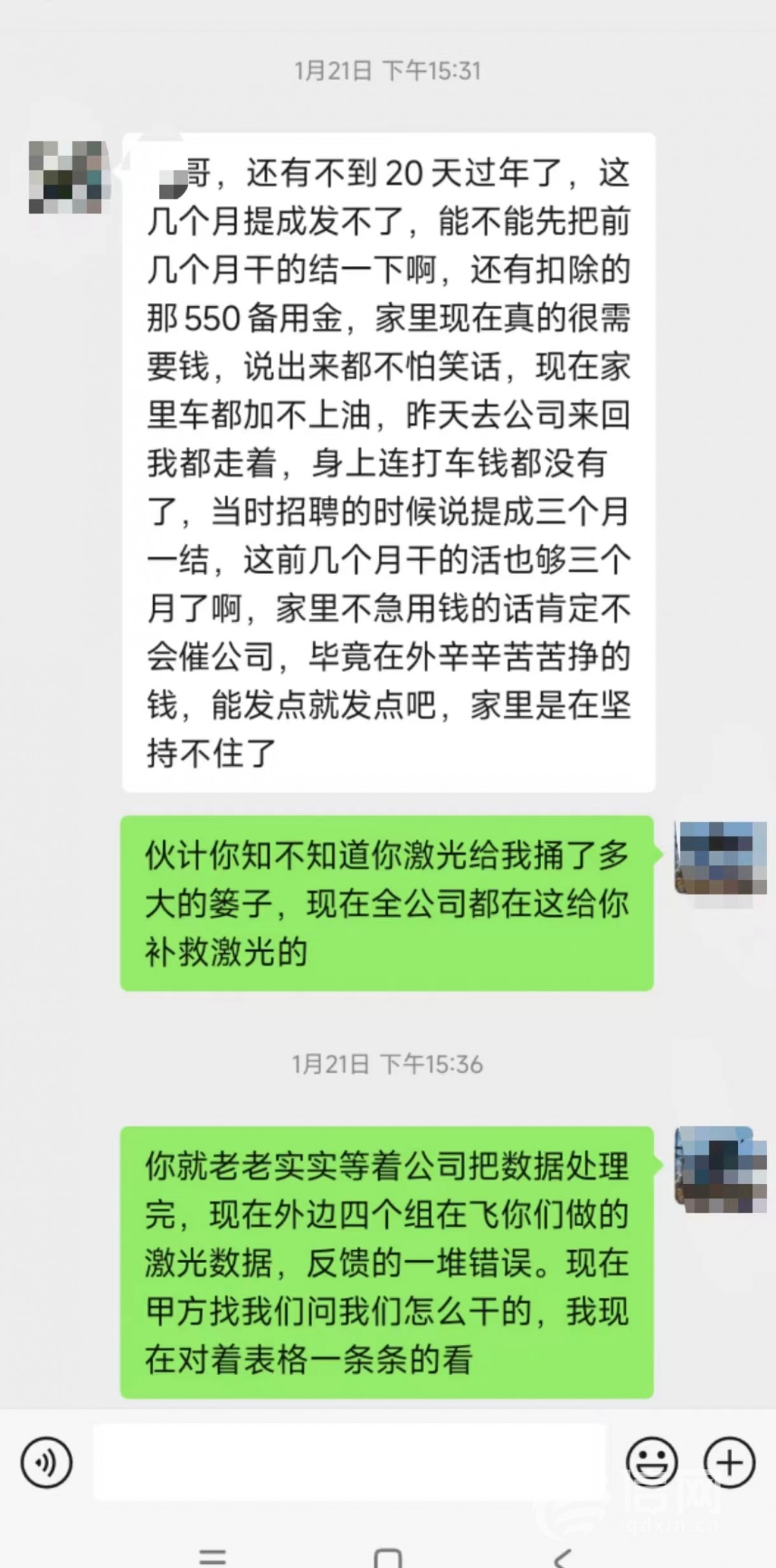滕先生毕业后就经人介绍来到卓恩泰科,成为了一名无人机飞手,劳动合同上约定底薪每月4000元。“我的工作主要就是使用无人机进行项目数据测量和数据整理,需要经常出差。今年1月份,我因为家里的原因提出辞职,辞职的时候公司核算还有12000元左右的提成没发,说是等下个月发工资的时候一起发。”