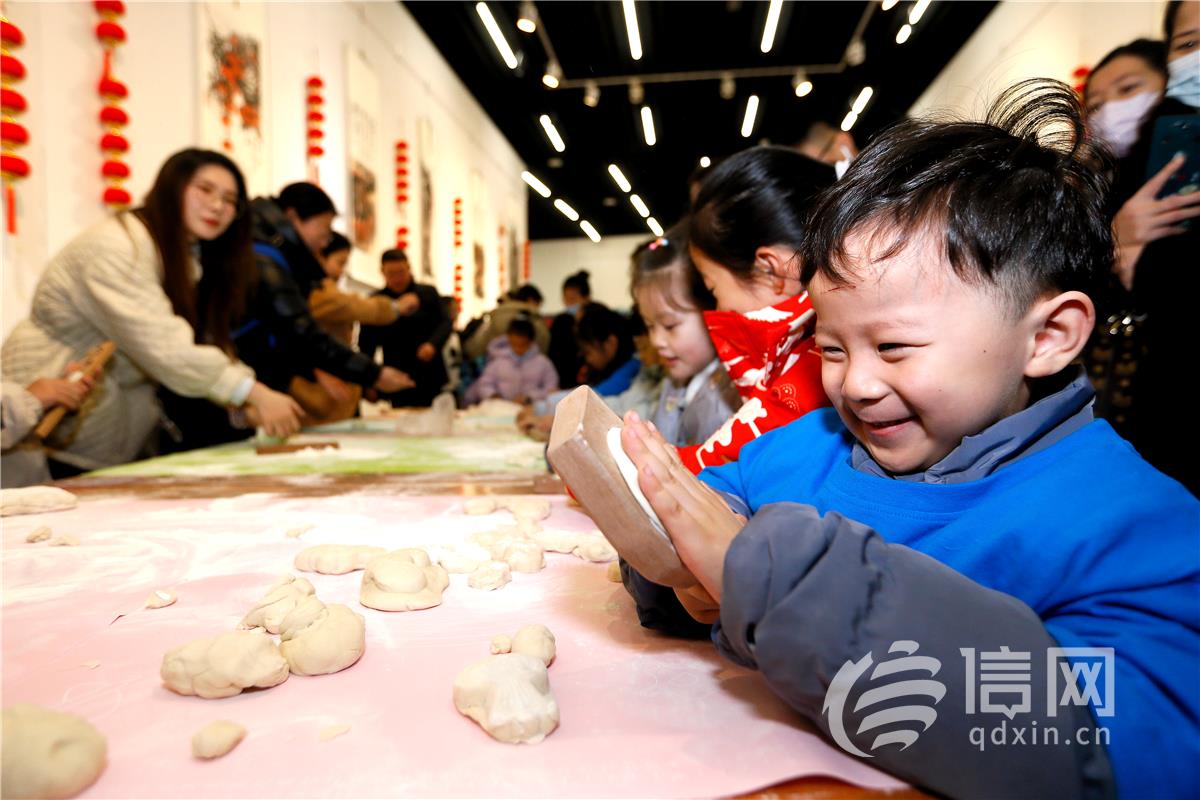 东门里大街上,“移风易俗树新风”签名墙前人头攒动,孩子们郑重签下名字,承诺文明过节;童趣市集上,粮食画、儿童剪纸等手工作品琳琅满目,现场体验手工棉花糖、糖画制作更是让孩子们乐在其中。此外,即墨老字号、非遗手造、传统小吃等一一展现,孩子们穿梭其间,沉浸式地体验着年味的醇厚;