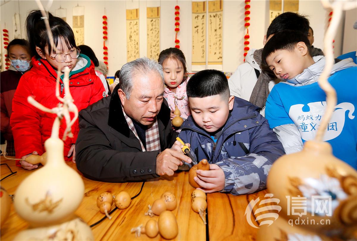 在古城美术馆内,书法家们与一群朝气蓬勃的“小书法家”现场泼墨挥毫,一笔一划间,墨香四溢,传递着孩子们对新年的美好祈愿。馆内还精心设置了葫芦烙画、宋代点茶、特色剪纸等非遗项目展示区,让孩子们深切感受到传统文化的独特韵味和无穷魅力。