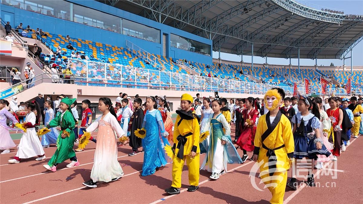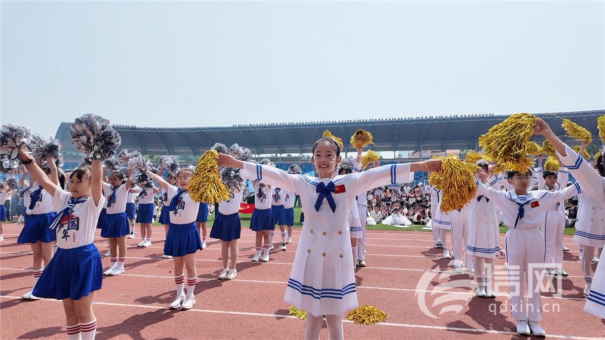 本次运动会以 “运动、健康、成长” 为主题,开幕式上以展示 “年级特色” 的形式进行,各年级精心设计,创意十足。一年级以 “绿茵小将,‘足’够闪亮(足球主题)” 为特色,孩子们化身小足球运动员,展示足球风采,充满活力;二年级以 “读万卷诗书,行千里赛场(读书主题)” 为主题,学生们手捧书籍,迈着整齐的步伐,展现书香校园的独特魅力;三年级围绕 “‘手’摘星辰,‘篮’动未来(手球、篮球主题)” 展开,他们手持篮球,动作矫健,充满朝气;四年级以 “科技点亮童心,梦想启迪未来(科技主题)” 为主题,孩子们的服装和道具充满科技元素,让人眼前一亮;五年级的 “逐梦深蓝,挺膺担当(海防、德育主题)” 入场式,展现出孩子们对海防的热爱和担当精神;六年级的 “绳彩飞扬” 入场式,孩子们活力四射,展现运动风采。