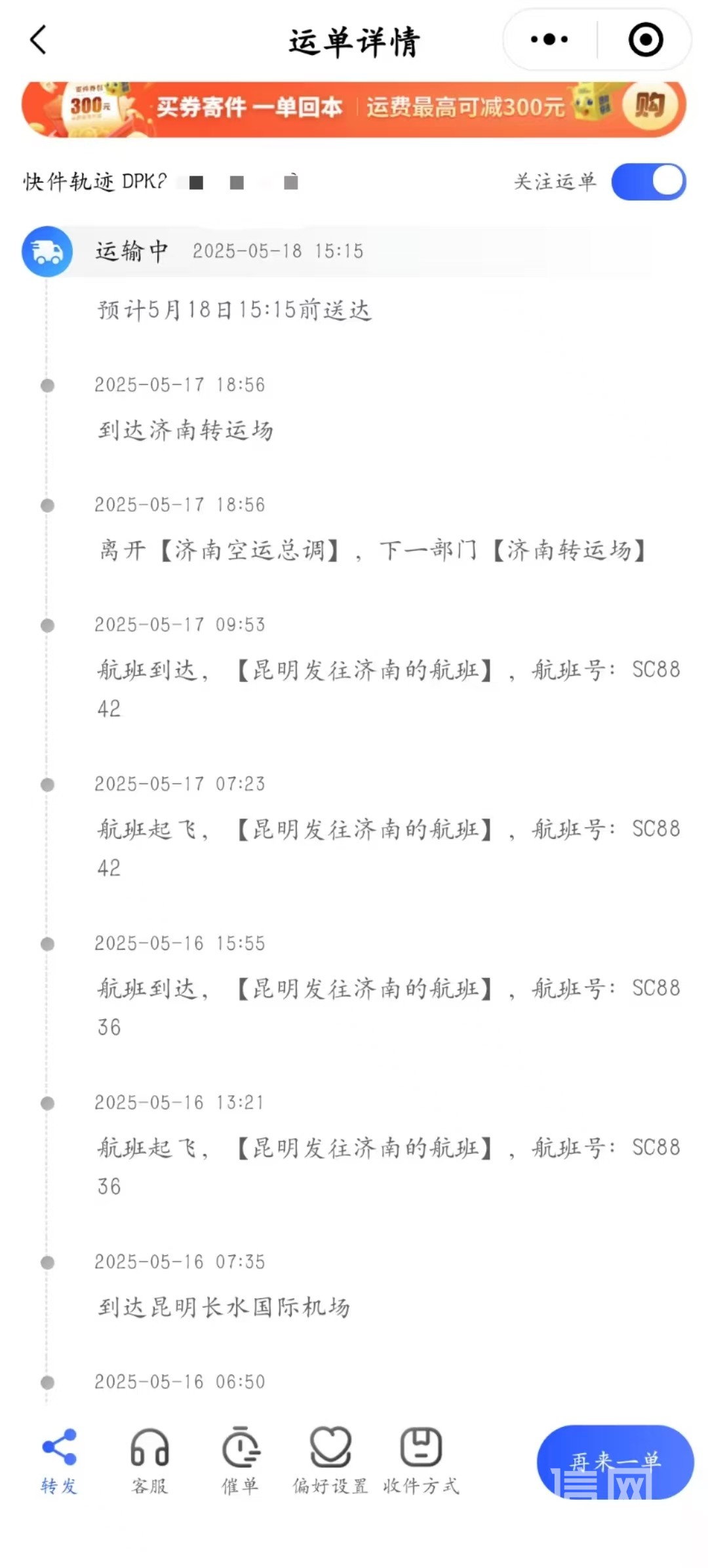 根据冯女士手机上的订单运输详情,这一订单起飞了2次,原本5月16日就已经落地的订单,在5月17日又起飞了一次,这让冯女士摸不着头脑,自己的花难道需要分两次运输?损失究竟该谁承担?“我已经找到德邦的工作人员,对方表示运输过程符合流程,至于为什么飞了2趟,却没有解释。”