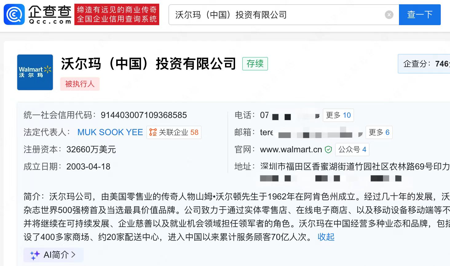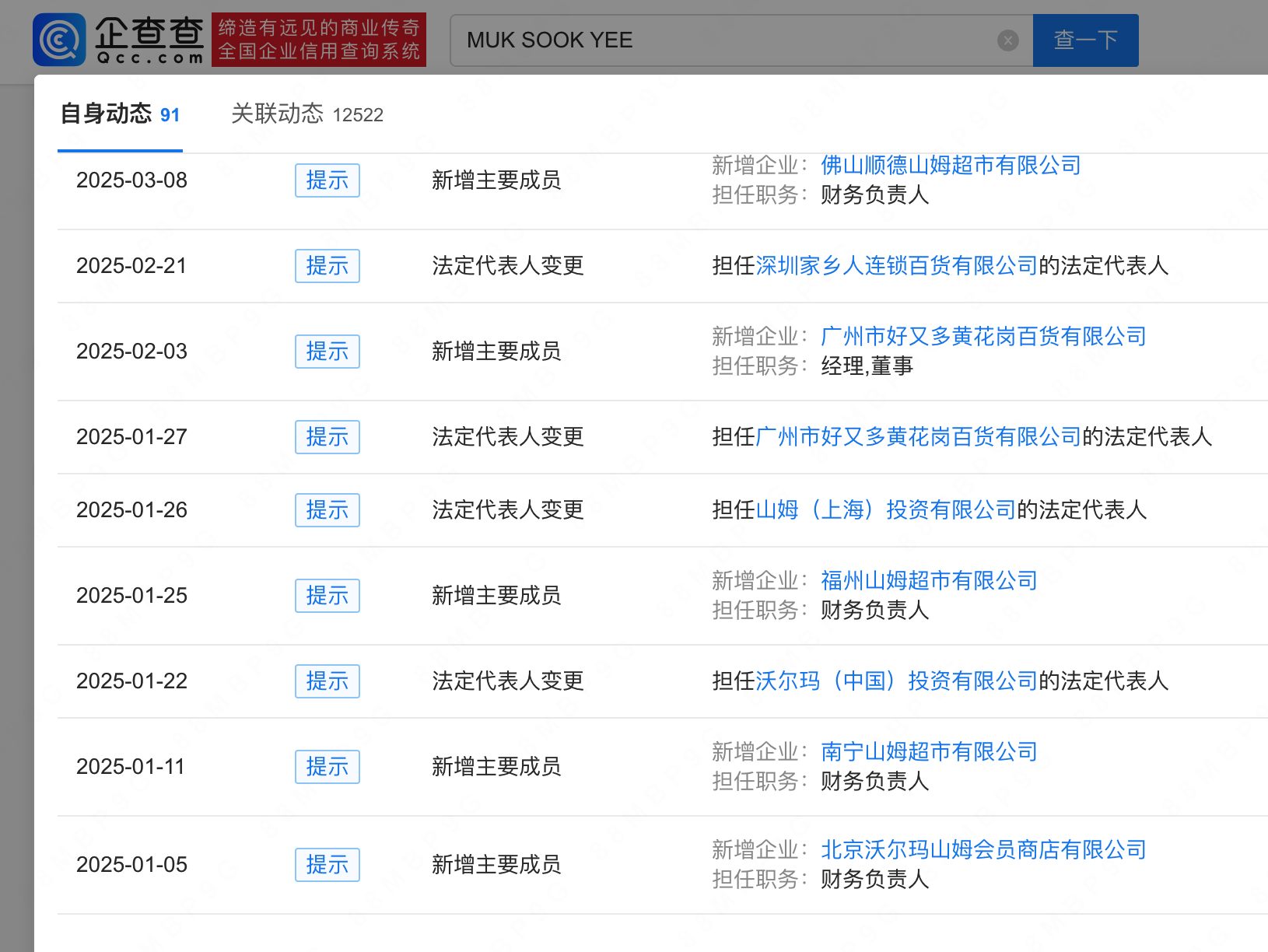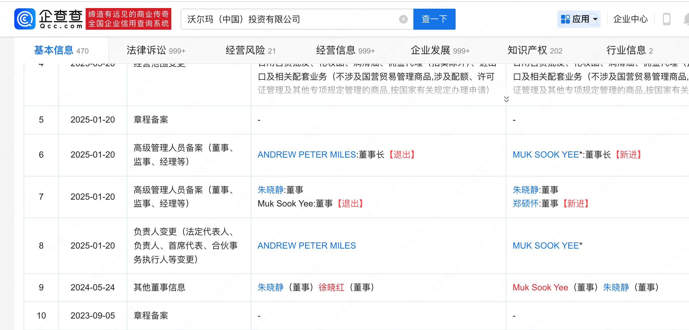 据悉,山姆隶属于沃尔玛旗下的高端会员制商店。查询企查查发现,沃尔玛(中国)投资有限公司成立于2003年4月,注册资本超3.2亿美元,由沃尔玛中国有限公司全资持股,今年1月,该公司董事长、法定代表人变更为MUK SOOK YEE,后者一并接任山姆(上海)投资有限公司等多家公司职务。(信网记者)