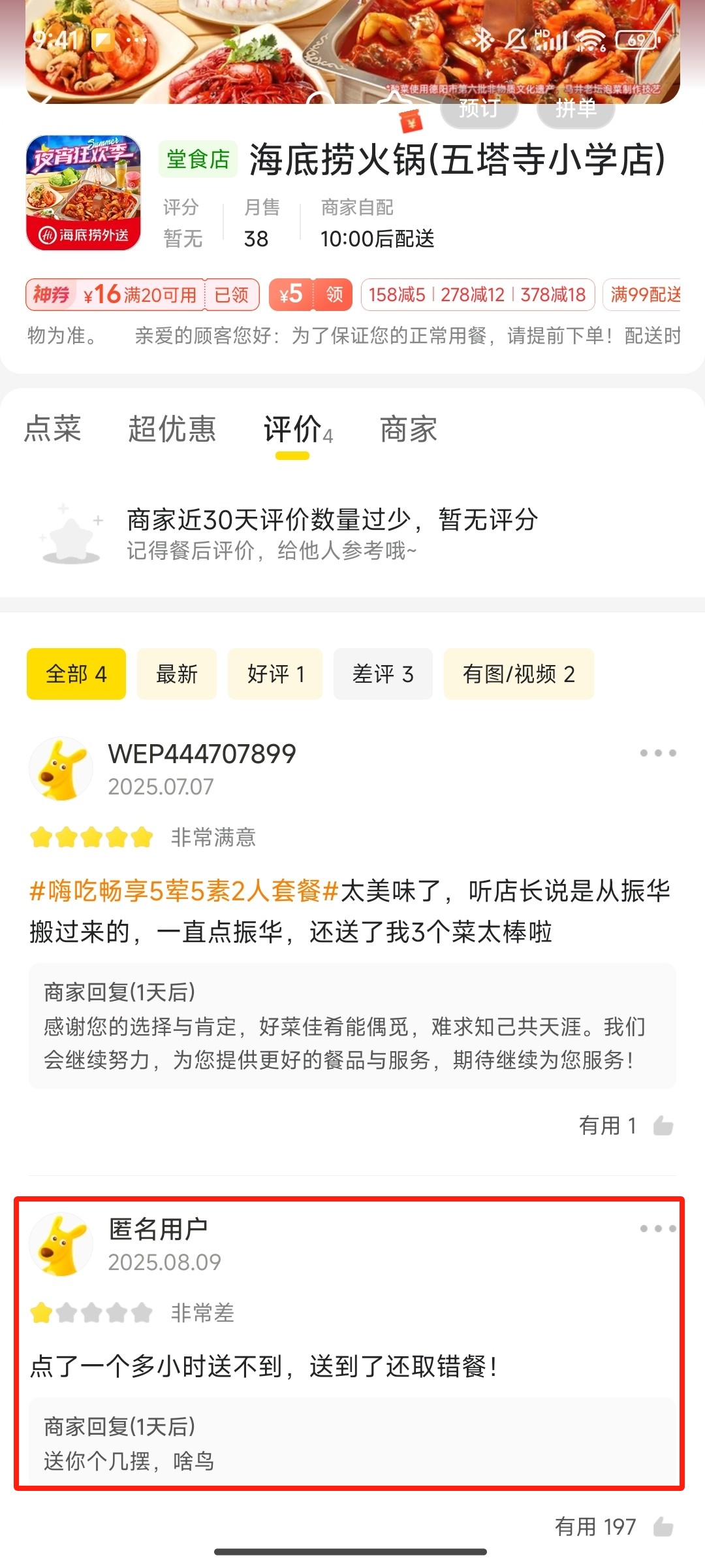 外卖平台显示,涉事门店经营者为四川锦海企业管理咨询有限公司呼和浩特一分公司,8月9日,有消费者评价送餐慢、取错餐等问题,商家回复“送你个几摆,啥鸟”。