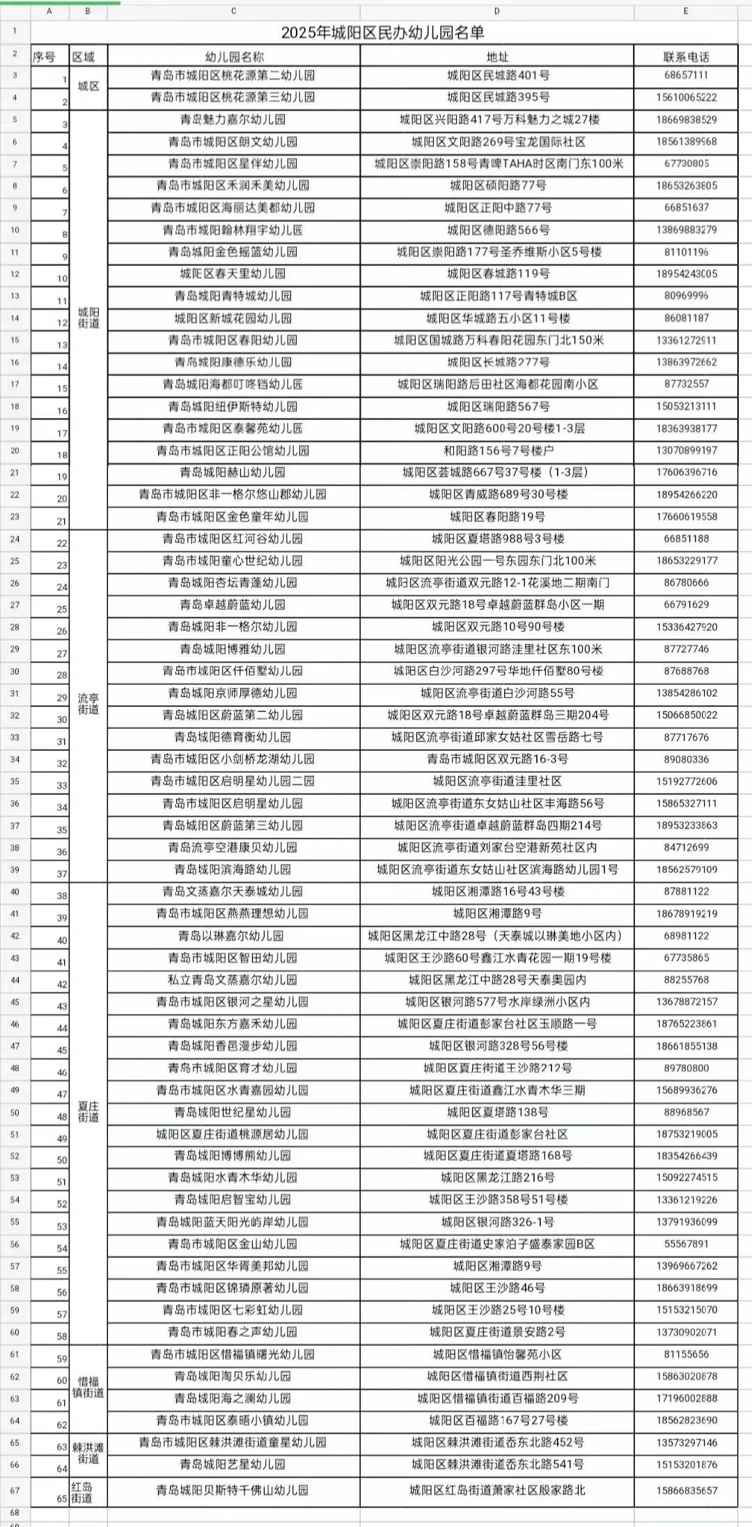2025年城阳区公办幼儿园名单