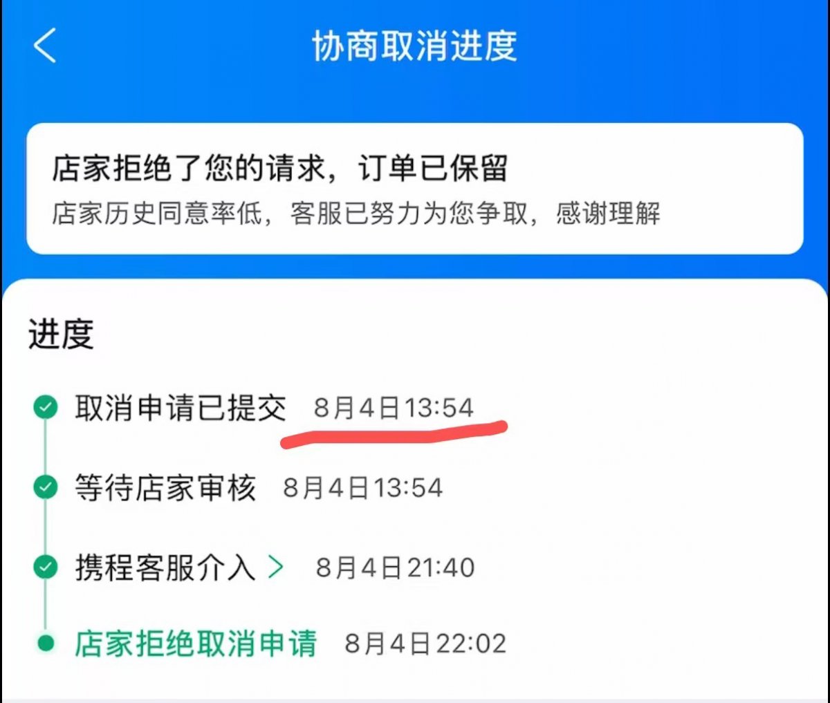 于女士称,客服告诉她,那笔订单在8月4日13时54分21秒下单操作的同时,就已预订成功。而她的取消申请提交时间为13时54分59秒,虽然只相隔38秒,仍属于订单确认后的操作。而该房型本身标注“不可退订”,即便因签证等不可抗力无法出行,费用也需全额扣除。对于40秒可以完成检验和订单确认的疑问,客服解释称,携程与该海外酒店已实现系统直连,酒店此前已将合作房间预留至平台,只要系统显示有房,用户提交订单时便会自动完成确认,无需酒店再单独进行人工操作,且平台预订流程无需对该条款进行二次确认,用户下单即视为知晓并认可相关规则。