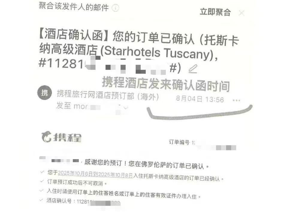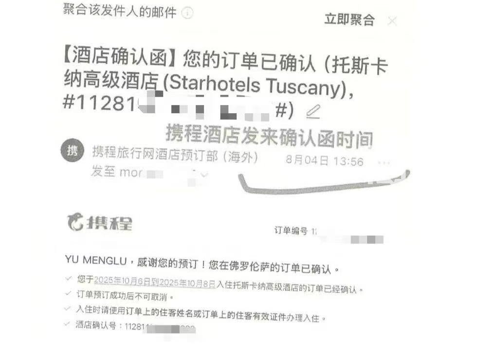 于女士告诉信号新闻(0532-80889431),为了准备10月份的意大利之行,她在8月4日登录携程,准备预订佛罗伦萨托斯卡纳高级酒店(Starhotels Tuscany) 的房间。“我的计划是预订可退房型,因为签证尚未办理,必须预留退改空间,但操作时误选了一个‘家庭连通房’套餐。”于女士说,她马上发现这个套餐带着“不可取消”的备注。