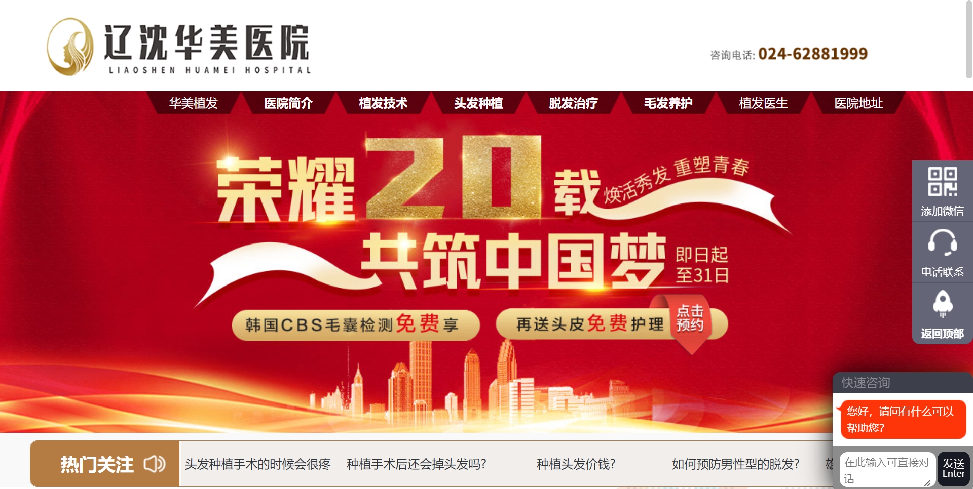 据辽沈华美医院官网,该医院位于沈阳市皇姑区华山路与珠江街交通岗 (沈阳市皇姑区珠江街120号),是华美医院在沈阳市毛发移植知名品牌,主要服务项目有头发种植、发际线调整、疤痕种植等毛发检测项目。(信网记者)