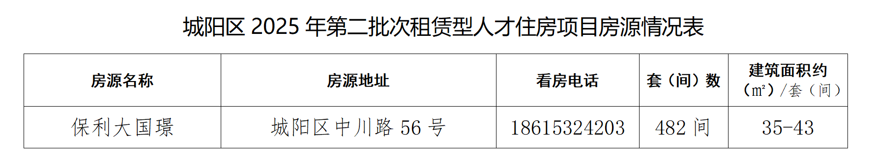 城阳区2025年第二批次租赁型人才住房项目配租公告