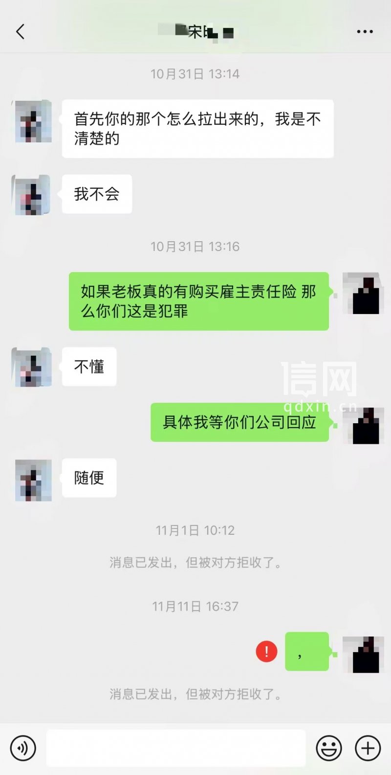4月17日吴先生出院不久,一名自称保险业务员的宋先生添加其微信。吴先生向这位宋姓保险业务员询问保险细节,对方以“保单是和公司签的”为由未予透露。没能从保险人员处找到答案,吴先生又找到了众拾公司负责人刘先生。