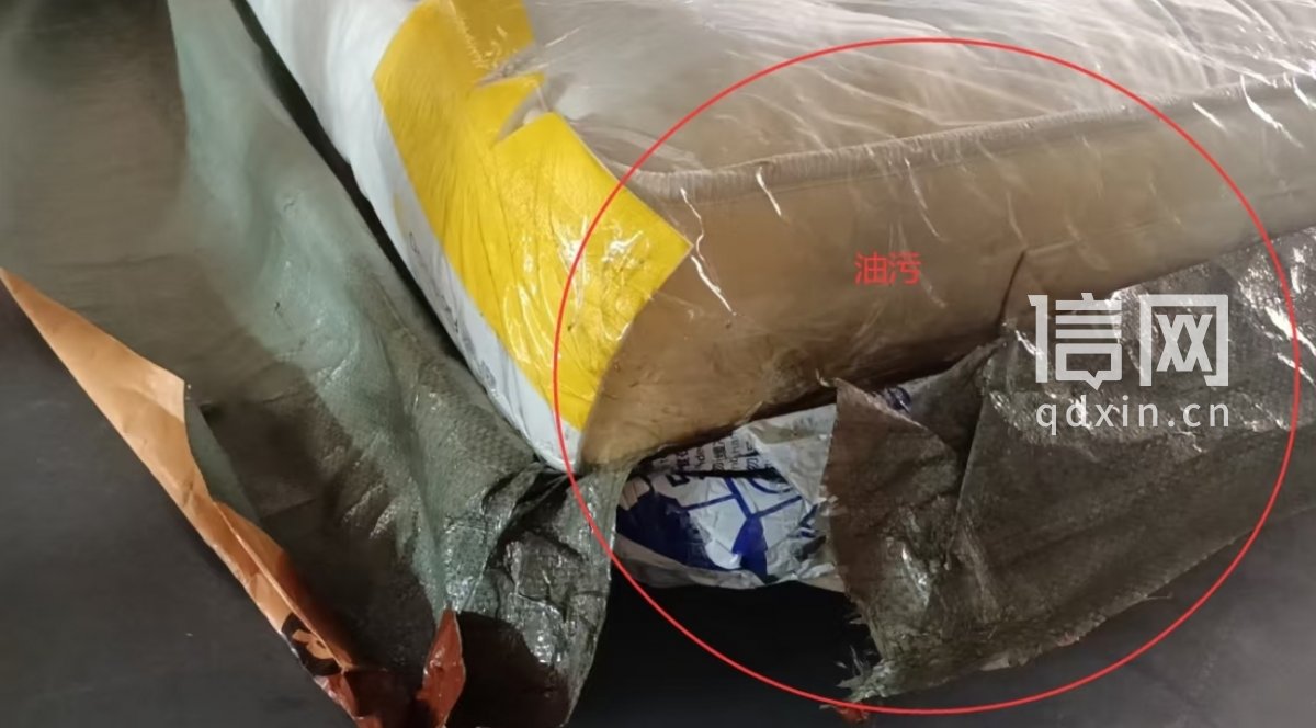 12月17日下午,商家收到货物后发现床垫的一侧被机油完全浸透,随即拒收,并向秦女士发送了损坏照片,明确表示床垫已无任何回收价值,无法进行二次销售,要求其自行联系德邦快递进行理赔。“商家和平台说我是退货快递的寄件人,只有寄件人才能申请理赔。可当我联系德邦的时候,却被拒绝赔偿。”秦女士提供了一段与区号0760的座机通话录音,录音中,对方自称“德邦快递”工作人员,称“佛山是家具运输的高风险地区”,行业都普遍执行对该地区的家具运输“免赔”规则,并且秦女士没有对床垫保价,所以无法赔偿。
