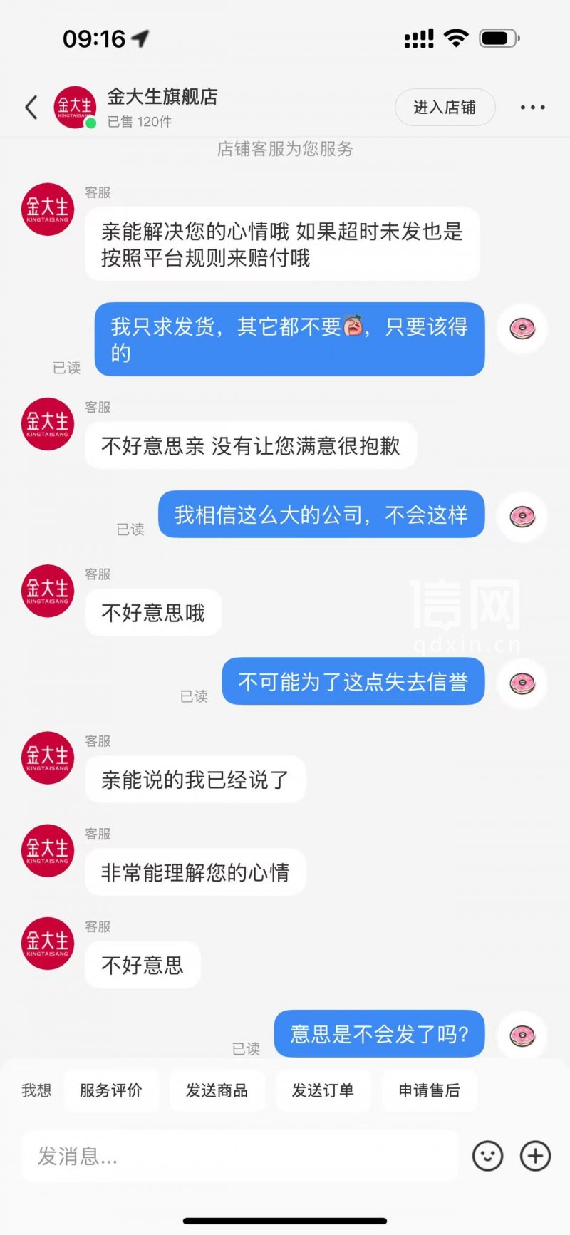 随后,信网从小红书平台客服处核实到,金大生旗舰店未按时发货且下架店铺商品链接的行为已构成违规。平台客服解释,商家入驻时需缴纳保证金,超时发货的60元赔付金将直接从保证金中扣除,由系统自动发放至消费者账号,无需手动申请。同时,平台会对违规商家采取扣除服务分、降低店铺曝光度和商品排名等处罚措施。