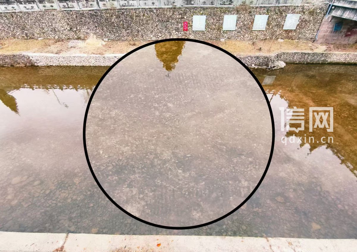 2025年11月30日,文先生从外地回村后发现,村口河道右岸亲水平台处的河水变得浑浊,走近了还有腥臭气味传来。当时水里的情况无法看清,他仅仅随手拍了张照片。12月21日他再次回村时发现,河水重新变清了,但原本两三米深的河水只剩下约半米深,河道底部还能看到明显的轮胎印记,施工痕迹明显,文先生比较关心的中国瘰螈不见了。