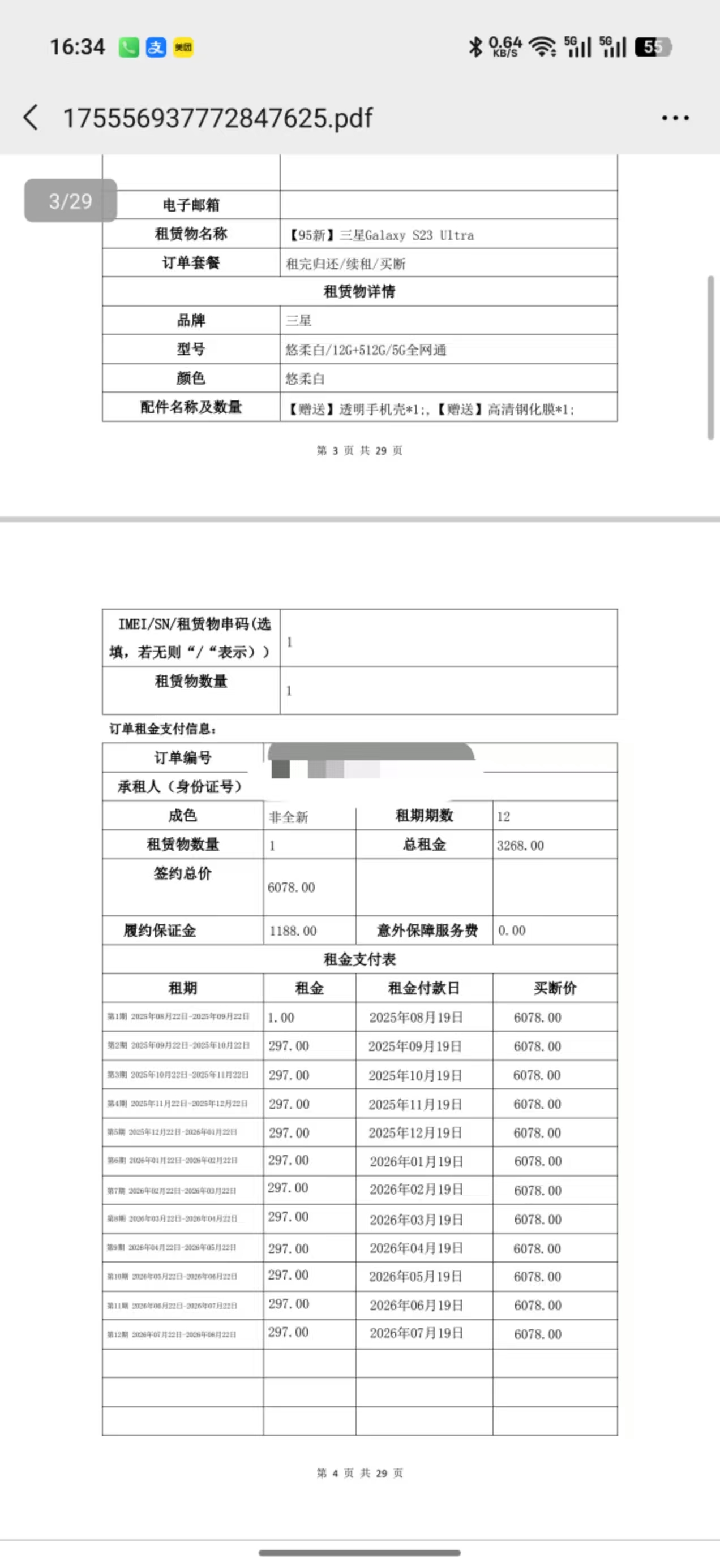 尹先生是云南昆明的一位摄影师,为了满足拍照需求,他必须同时拥有多部手机。2025年8月份,尹先生了解到机汤租机可以“先用后付”租赁手机,便通过支付宝的小程序租赁了一台95新的三星Galaxy S23 Ultra手机。租期为12个月,首月租金1元,剩余月份租金为297元/月。尹先生支付了1188元押金和首月的1元租金,之后的租金会按月自动扣除。
