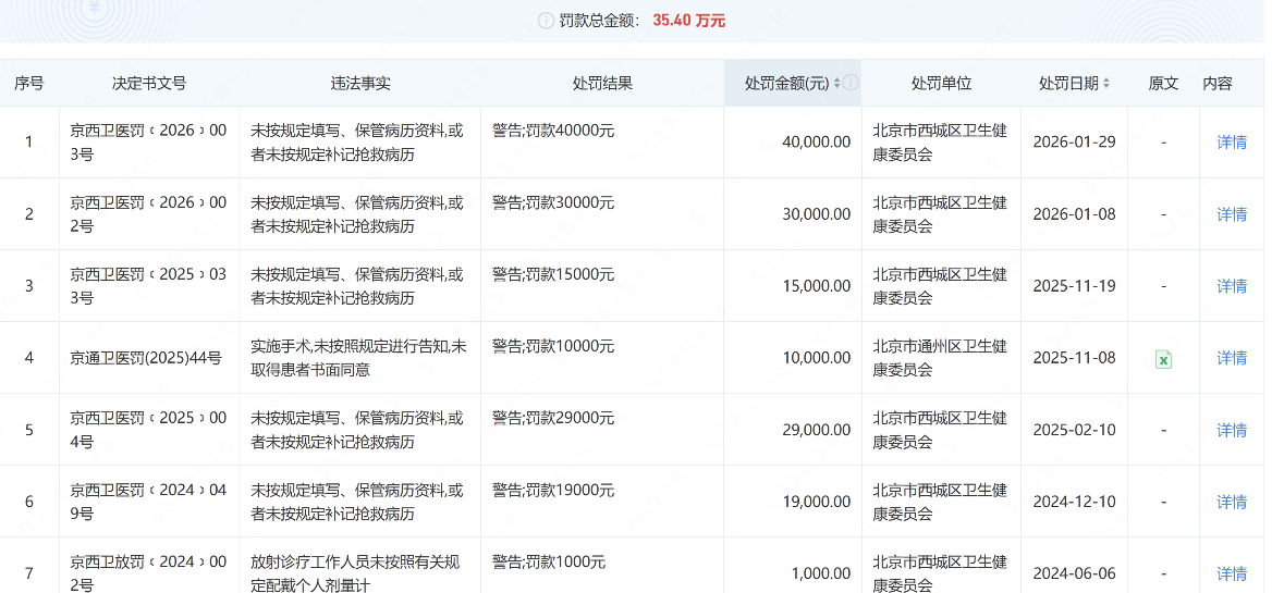 企查查平台信息显示,首都医科大学附属北京友谊医院曾经多次因未按规定填写、保管病历资料等问题,被北京市西城区卫生健康委员会依法处罚。(信网记者)
