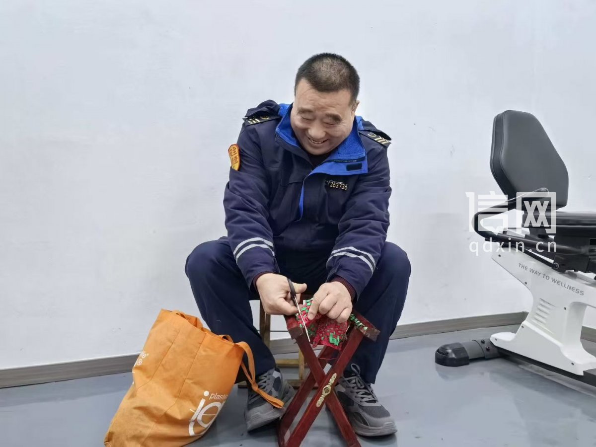 张宝强负责的是穿马扎,这是个格外考验手上功夫的活儿。腱鞘炎还没有完全恢复,服务过程中,他偶尔会因为手部传来的疼痛轻轻皱眉,但这些小不适,在他眼里根本不值一提。“大男人哪有那么娇气,这点小事不算什么。”
