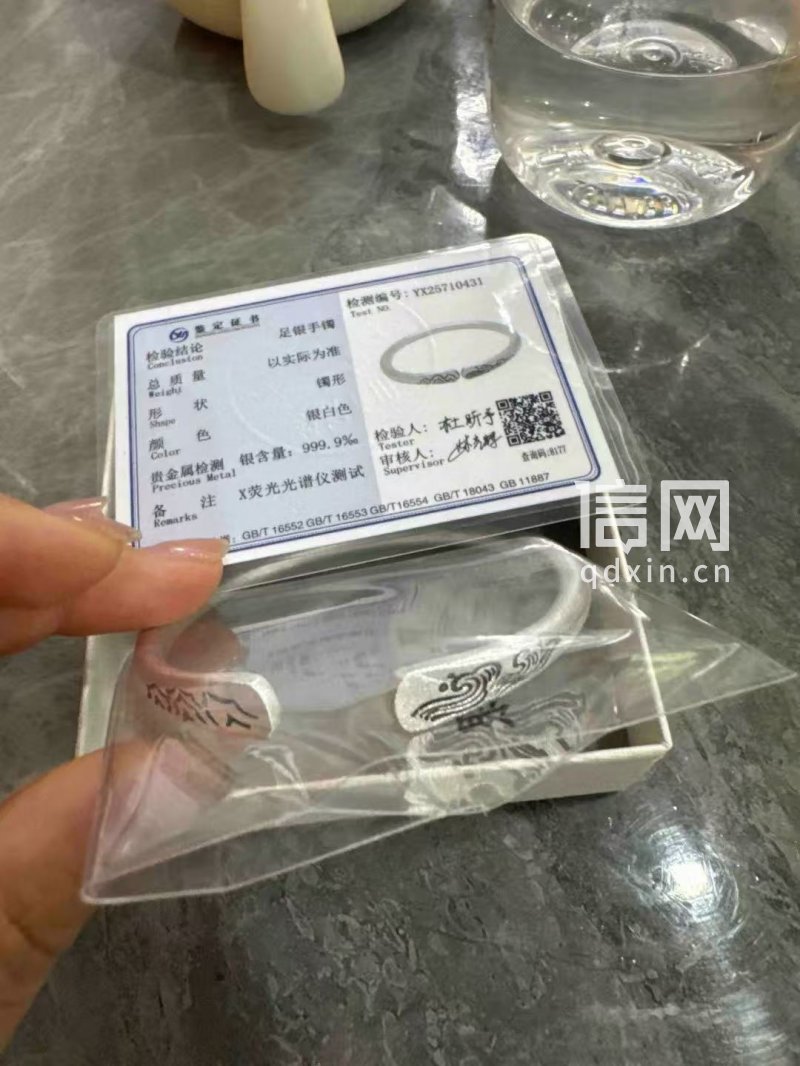 王女士提供的一份检测结果显示:银元素的平均值为1.77,铜元素则为50.67,除此还有镍元素和锌元素。“这不就是把铜当银卖吗?手镯还配着‘含银量999.9‰’的证书,明摆着欺骗消费者。”王女士把检测结果发给商家,可发出去的消息却如石沉大海一般,无人回应。随后,王女士联系了网购平台,最终平台也仅为她办理了退款。对此,王女士不满意,她希望得到“退一赔三 ”或“假一赔十”的补偿。