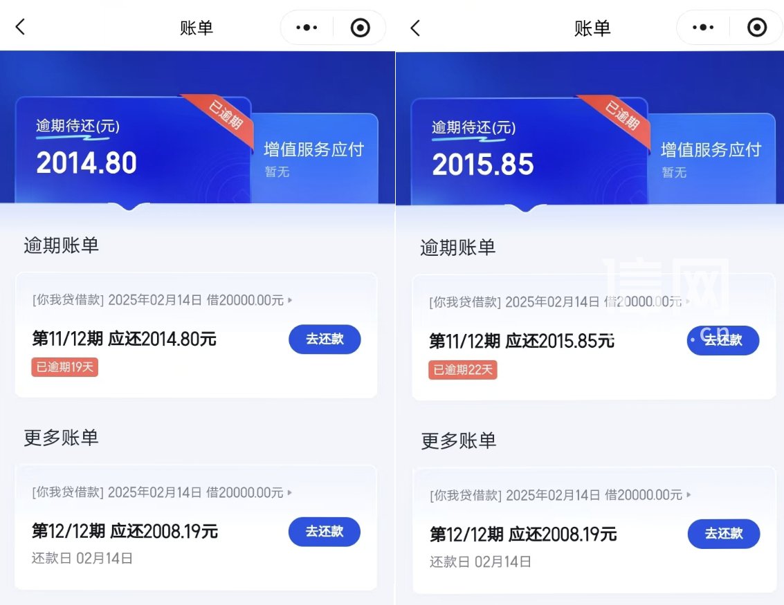 为进一步了解事件的详情,信号新闻联系了“你我贷”平台。工作人员向信号新闻表示,杨先生的还款日原本为每月14日,平台有9天资方数据同步的时间差,在此期间并不收费,超期后系统会自动计收罚息。之所以1月24日还款后出现逾期记录,是因为杨先生未及时向平台同步还款信息,导致对公账户的还款未能及时核销,并非平台计算规则问题。对于多出的罚息,平台曾提出让杨先生“先行支付平台再作返还”的方案,但因杨先生觉得操作繁琐并未接受。